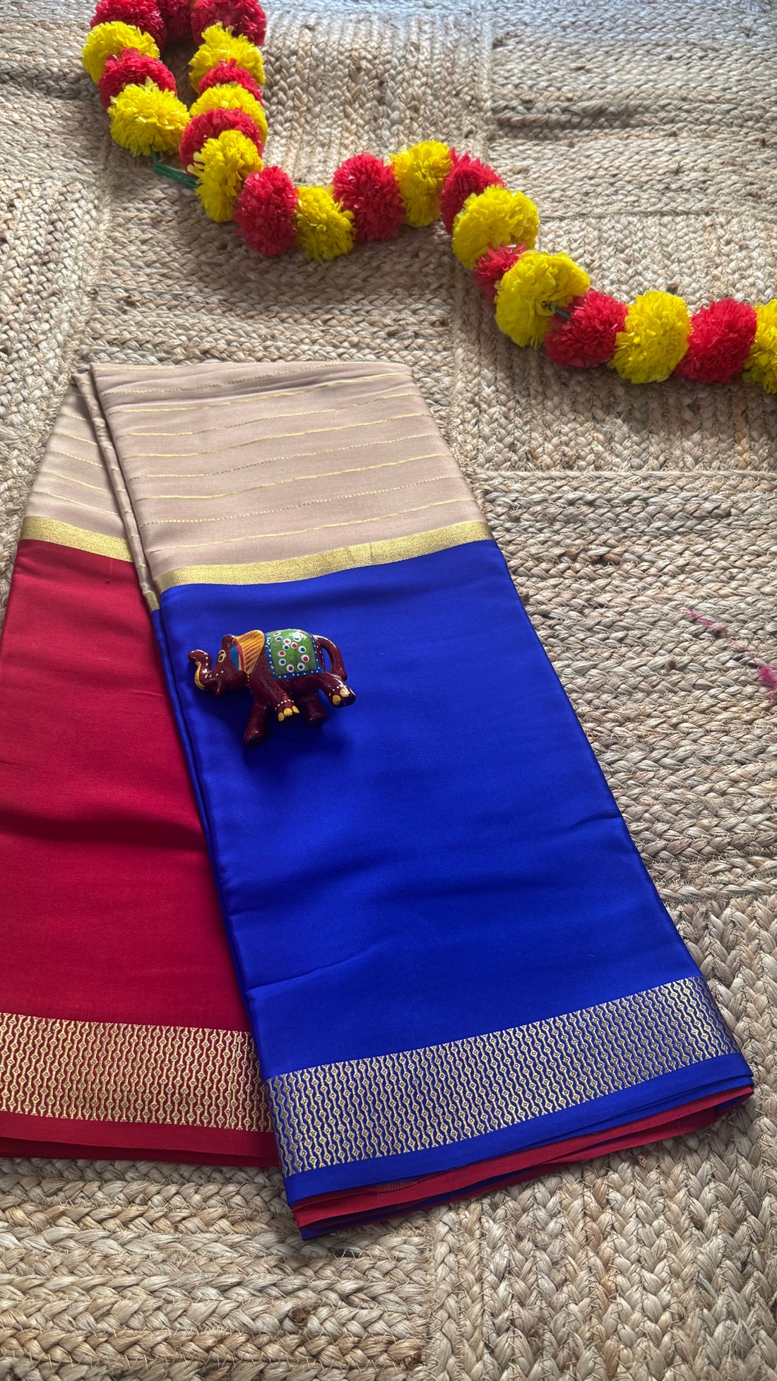 Suryaprada Collections - Mysore Silk Centre Line Blue Beige Red