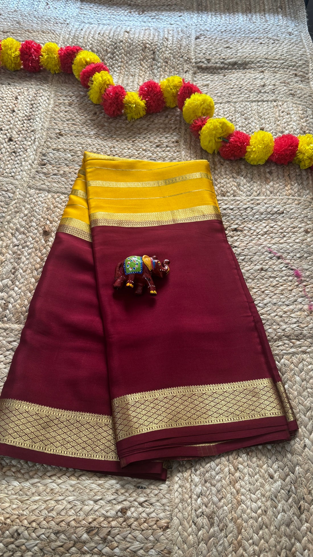 Suryaprada Collections - Mysore Silk Centre Line Mustard Yellow and Maroon