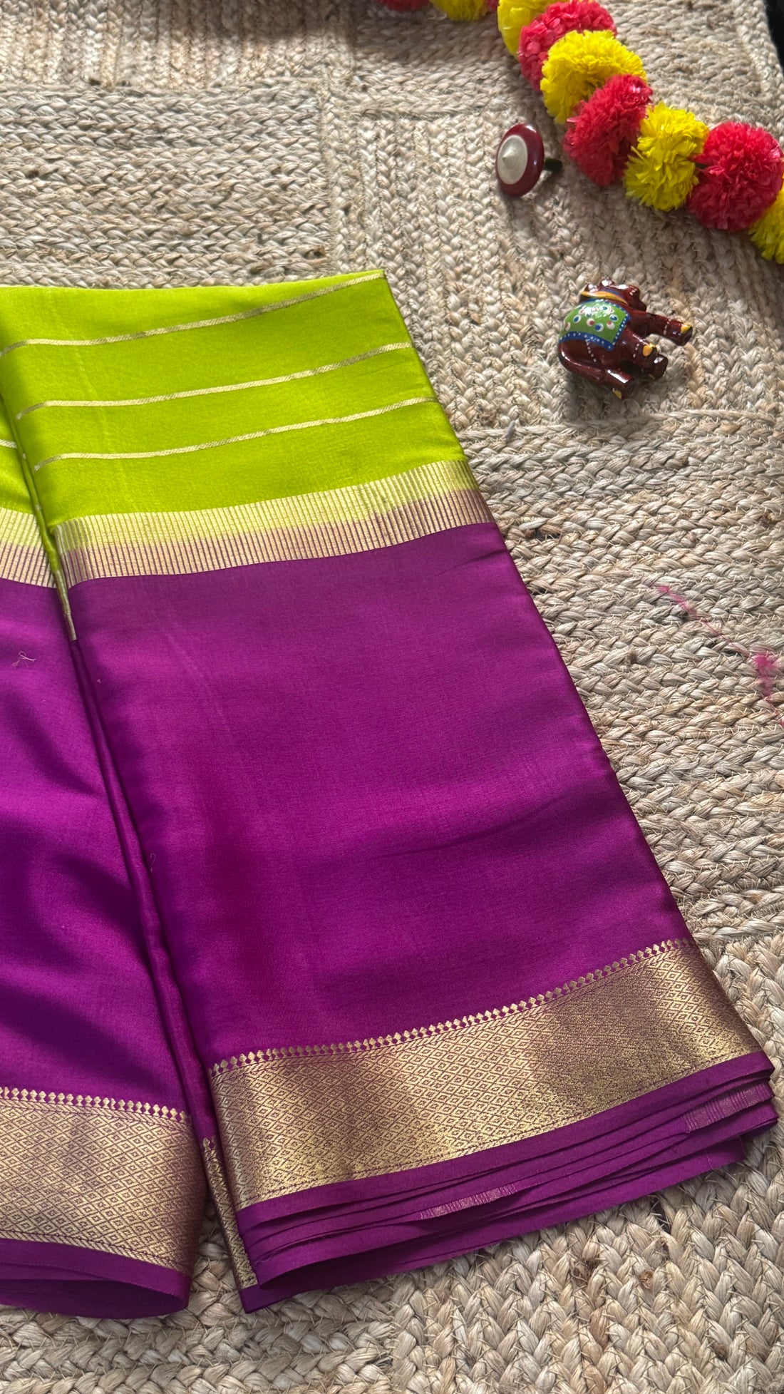 Suryaprada Collections - Mysore Silk Centre Line Green and Purple