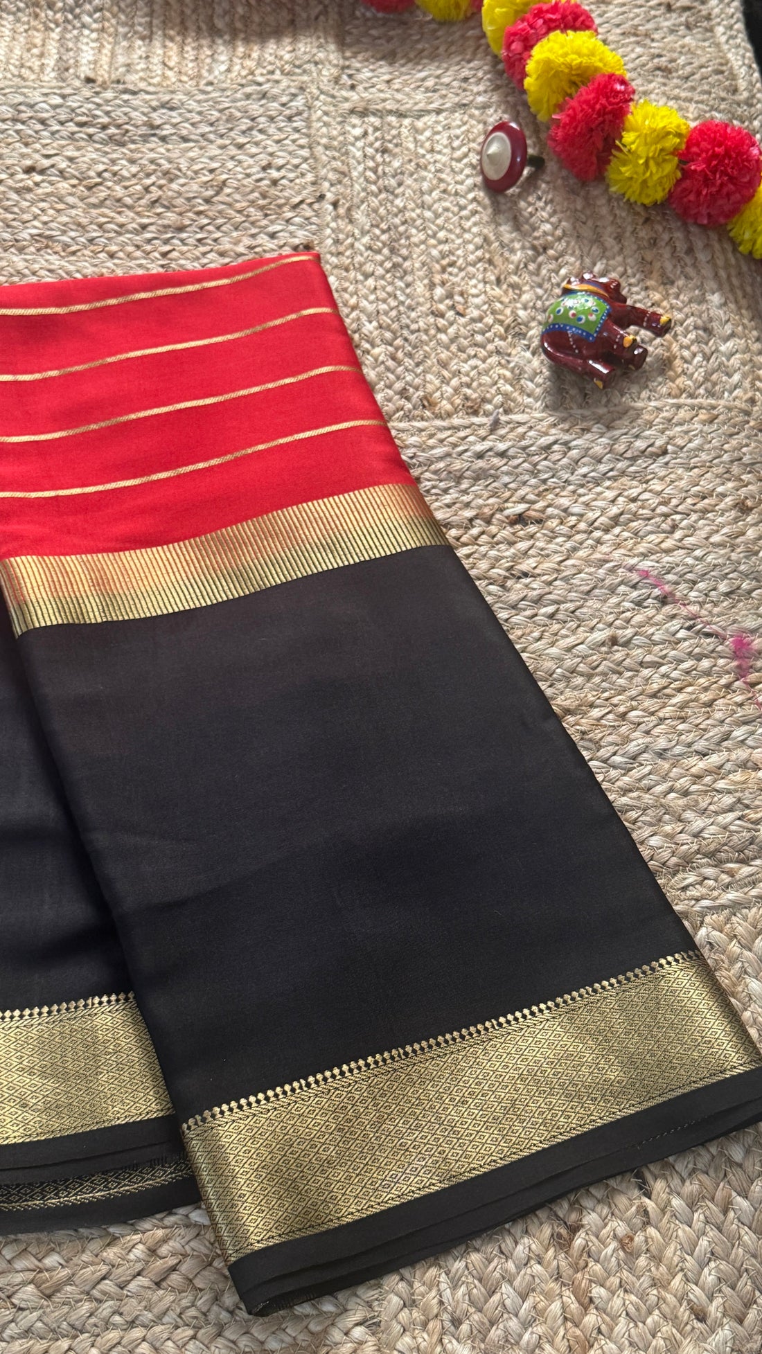Suryaprada Collections - Mysore Silk Centre Line Black and Red