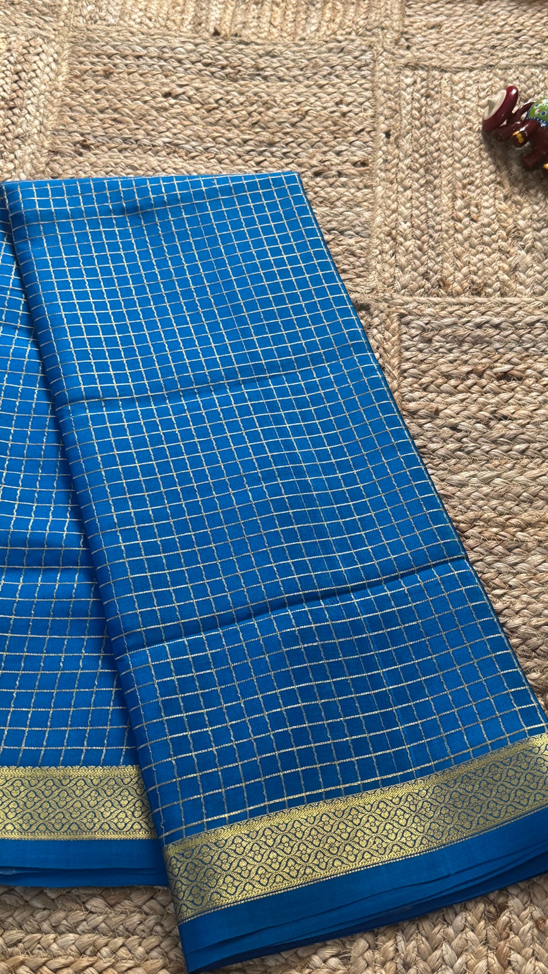 Mangalyam Collections - Mysore Silk Blue with Gold Zari Boarder