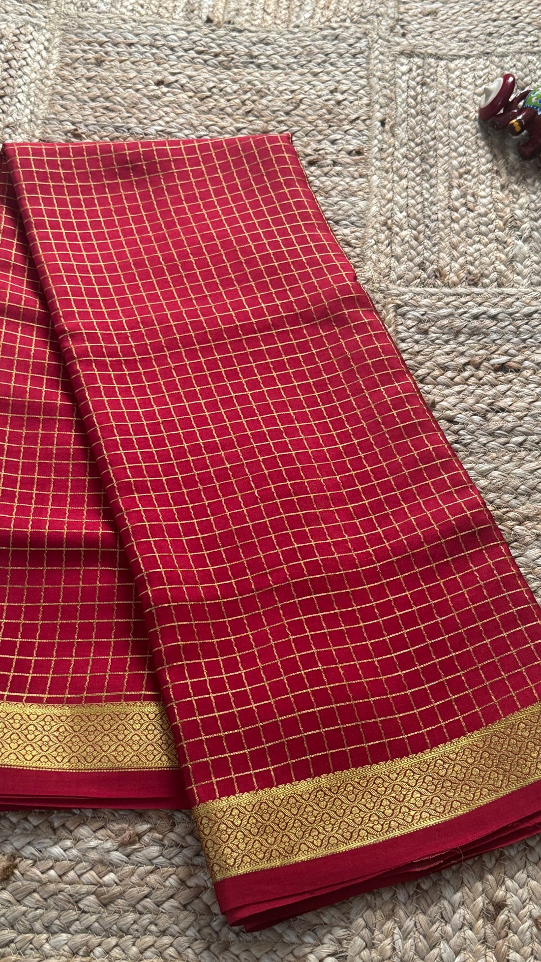 Prakriti Collections - Mysore Silk Centre Checks Maroon and Brown