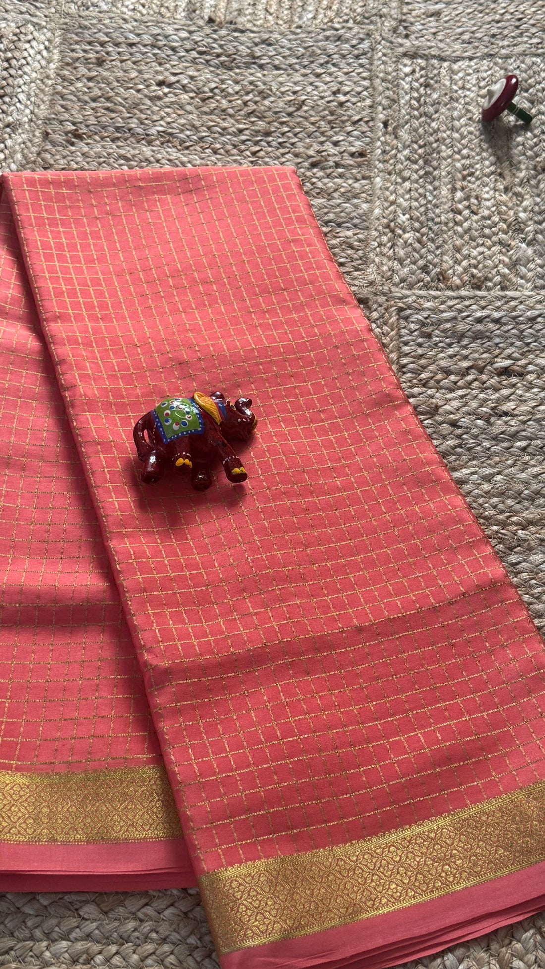 Mangalyam Collections - Mysore Silk Peach with Gold Zari Boarder