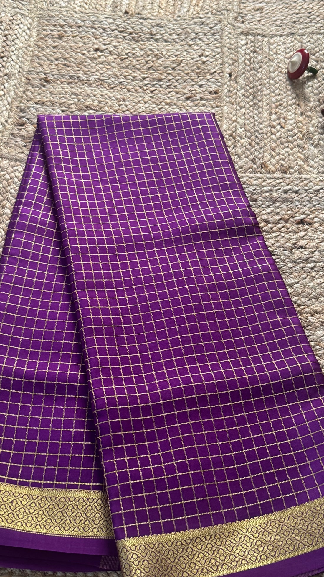 Prakriti Collections - Mysore Silk Centre Checks Purple and Wine