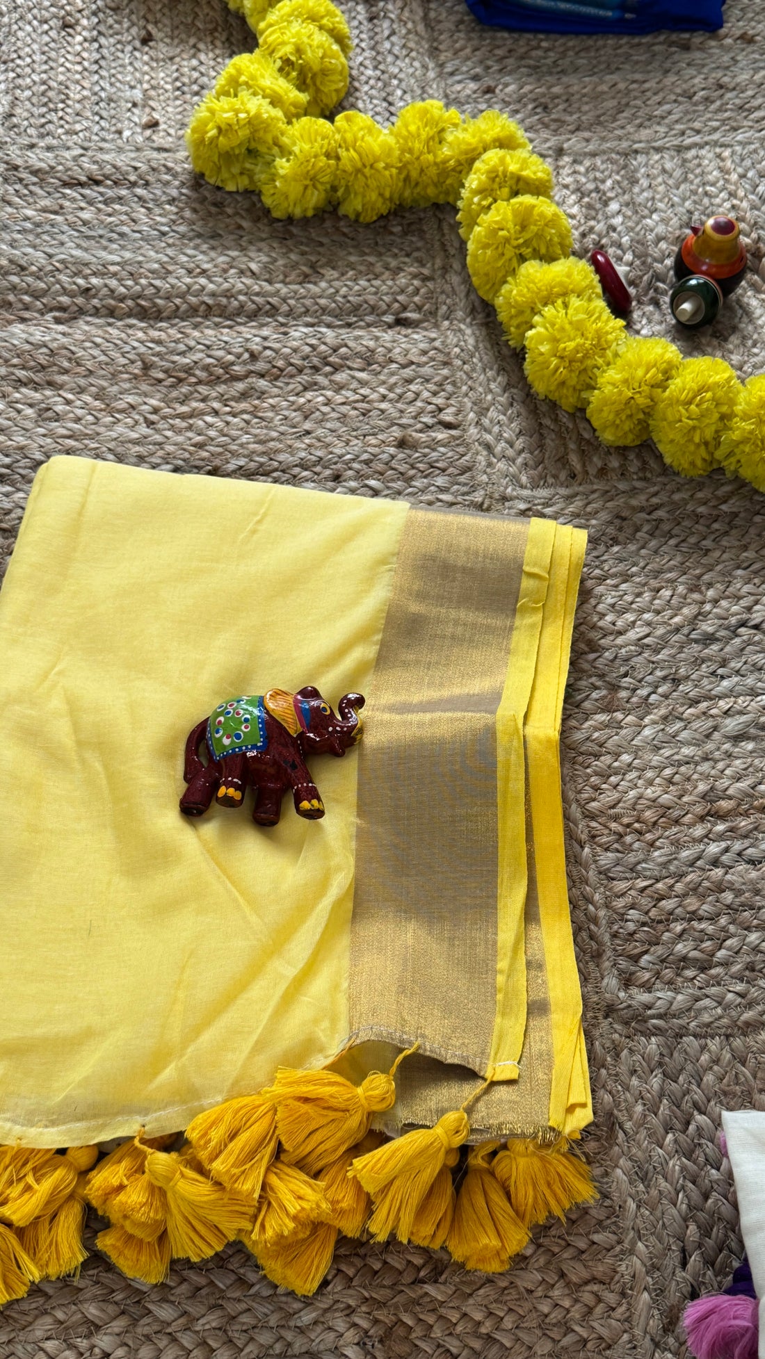Mul Cotton : Multi Pink Saree with Gold Lines