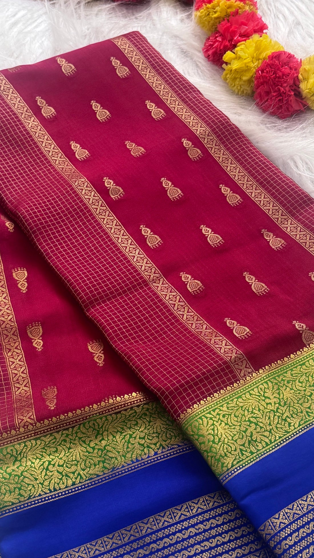 Pure Mysore Silk Saree - Jhumka Zari 3D Maroon, Blue and Green