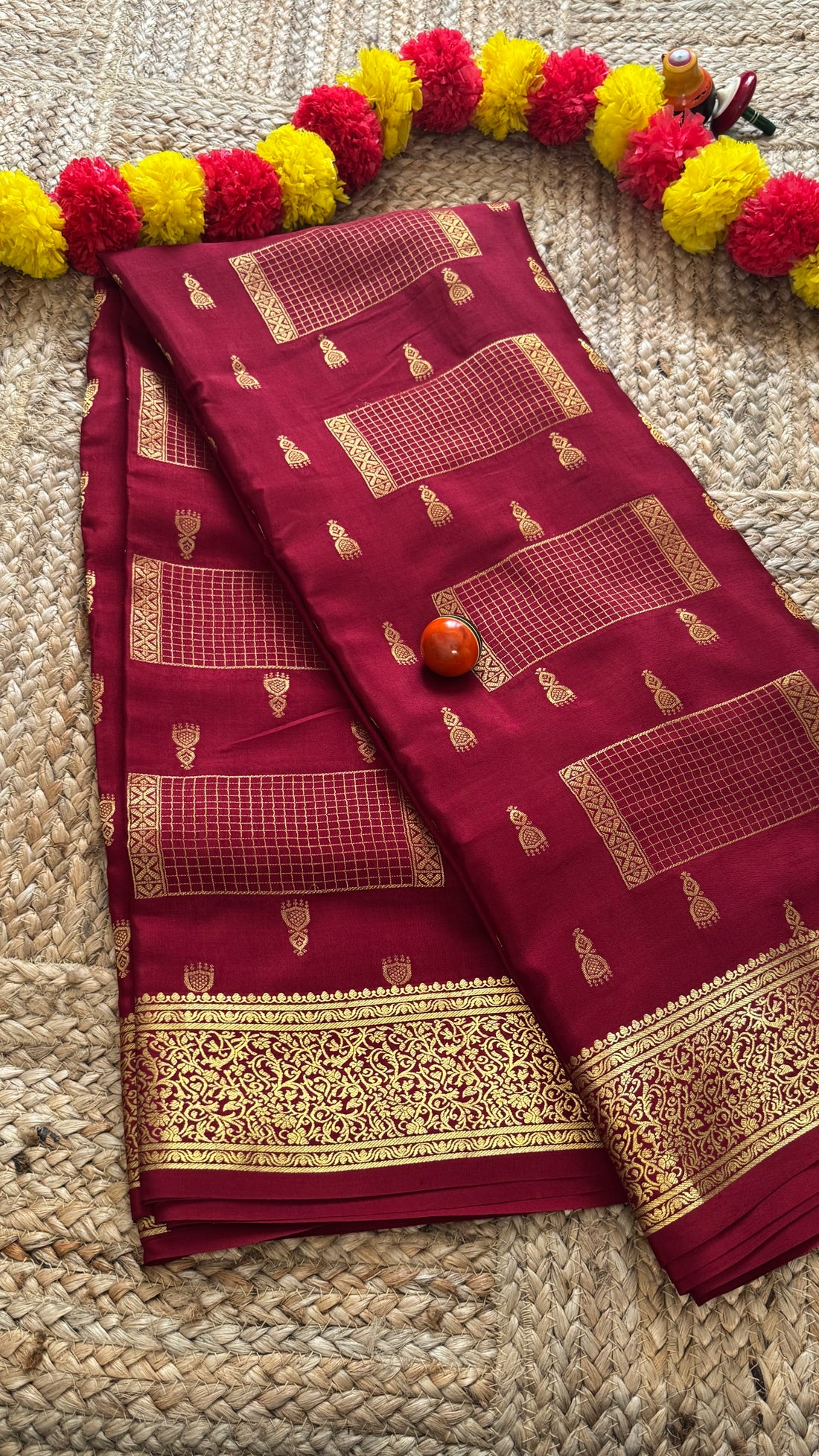 Mangalyam Collections - Mysore Silk Maroon with Gold Zari Boarder