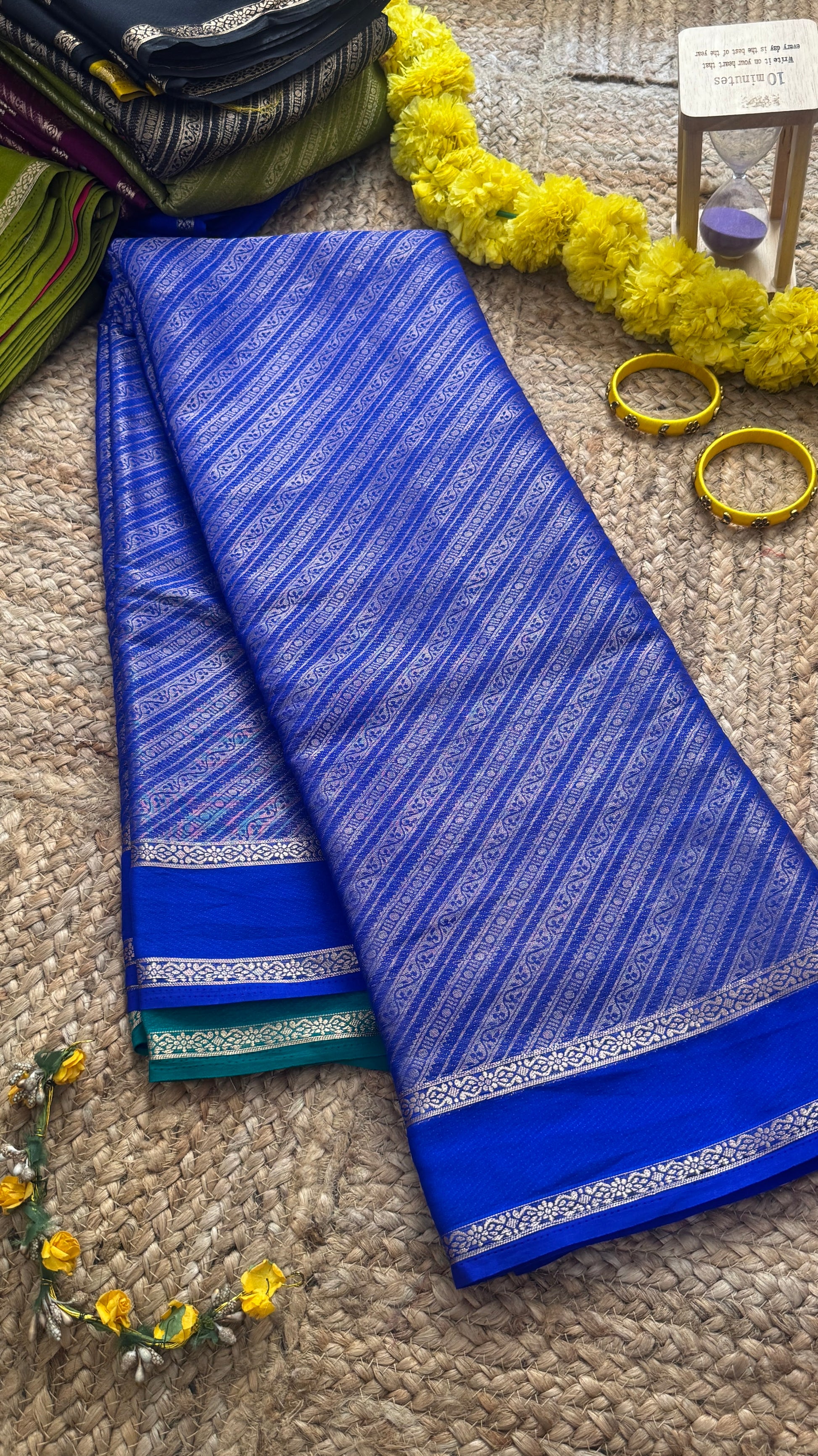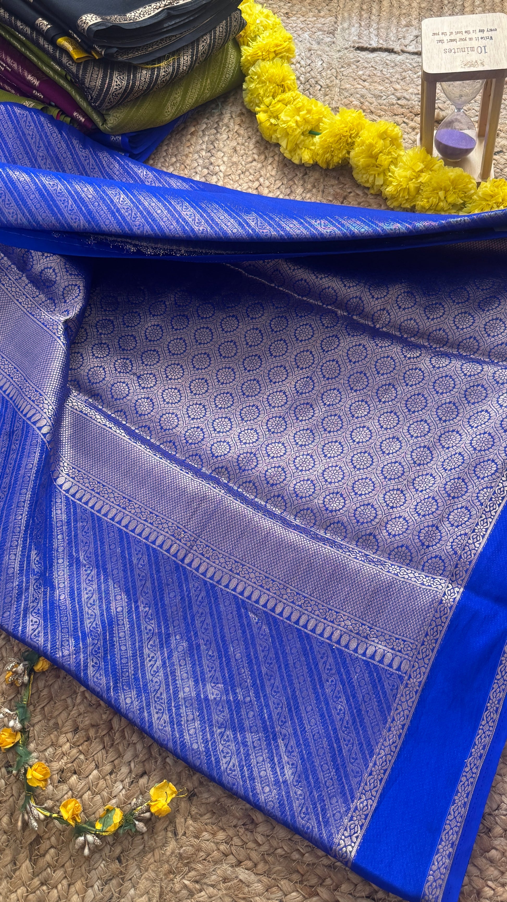 Brocade Sarees with Contrast Blouse - Royal Blue and Light Blue