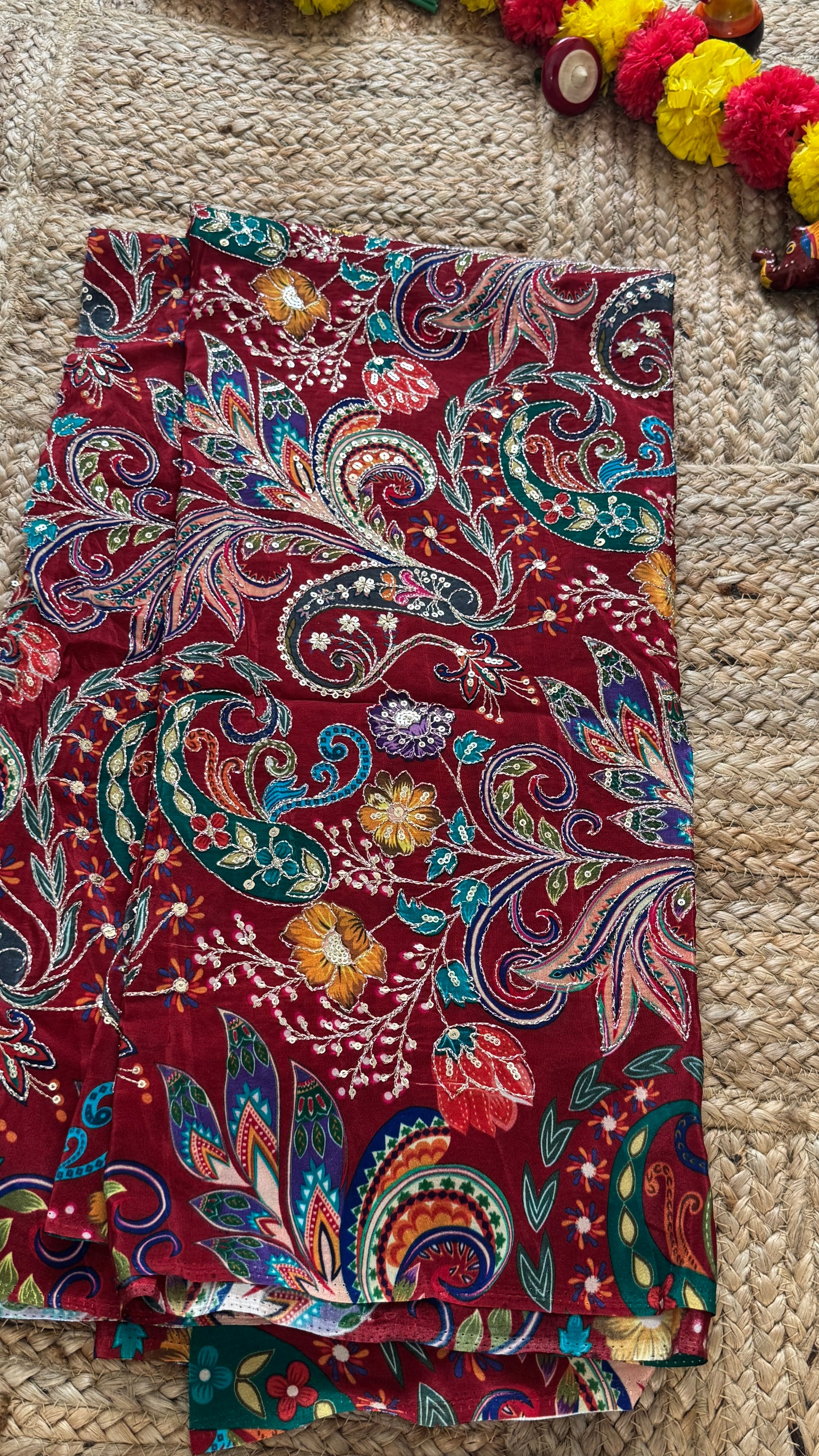 🔸 Work: Hand or machine embroidery with detailed, intricate finishing