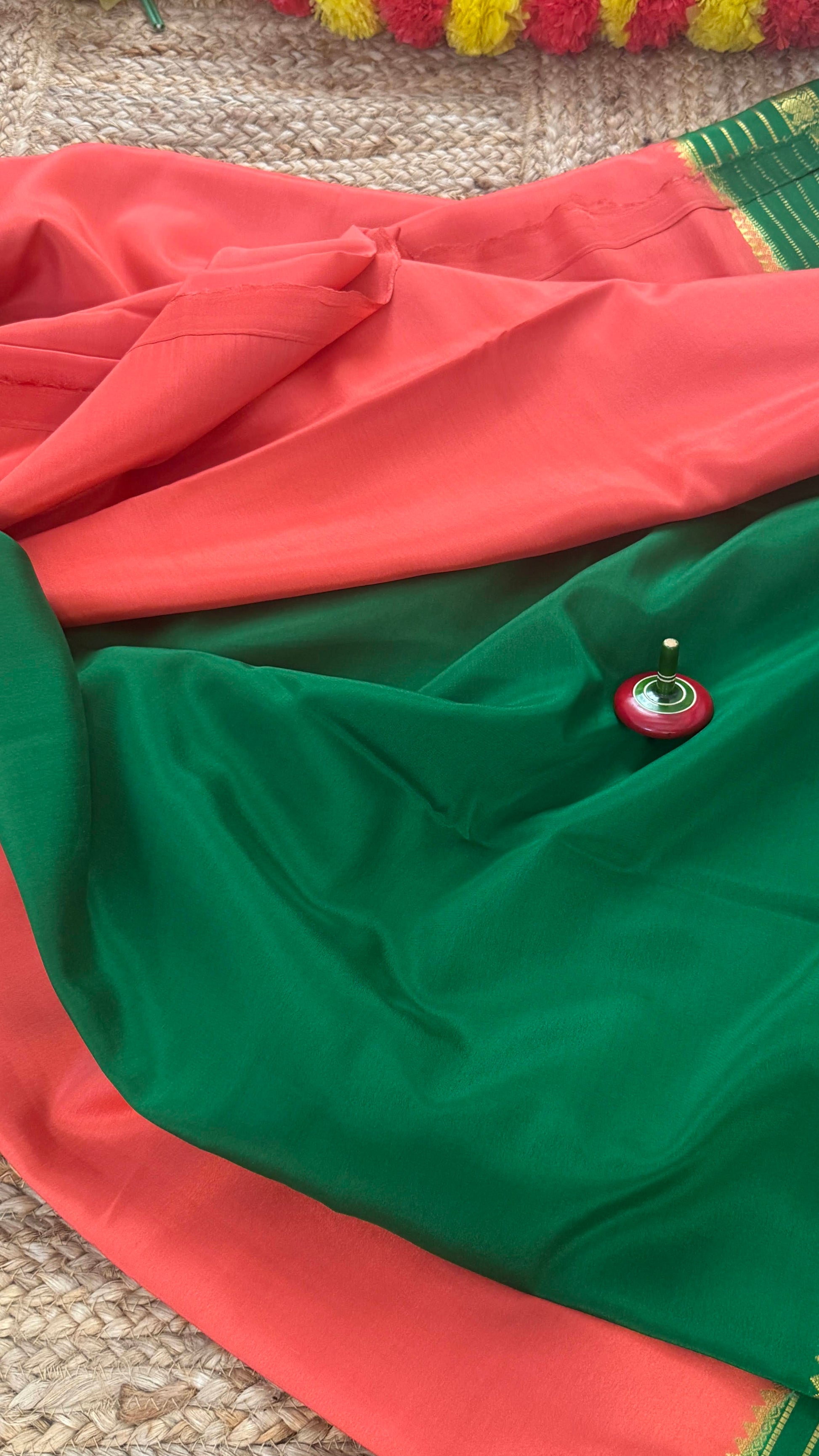 Mysore Silk Saree - Dark Peach and Green Peacock Boarder