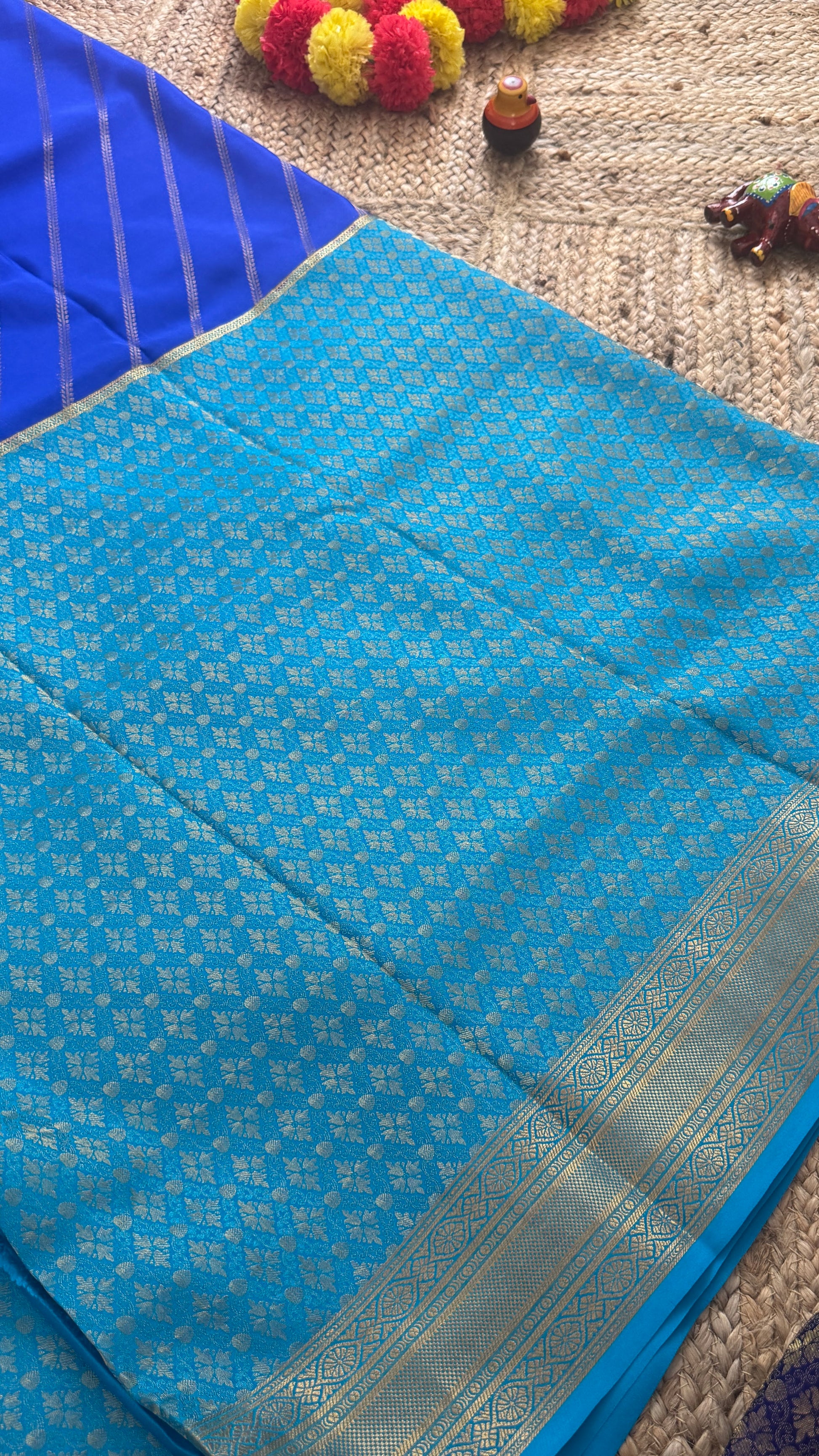 Pure Mysore Silk | Bespoke - HnH Brocade Sky Blue n Blue - Mysuru - 05