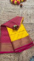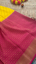 Pure Mysore Silk | Bespoke - HnH Brocade Yellow n Pink - Mysuru - 05
