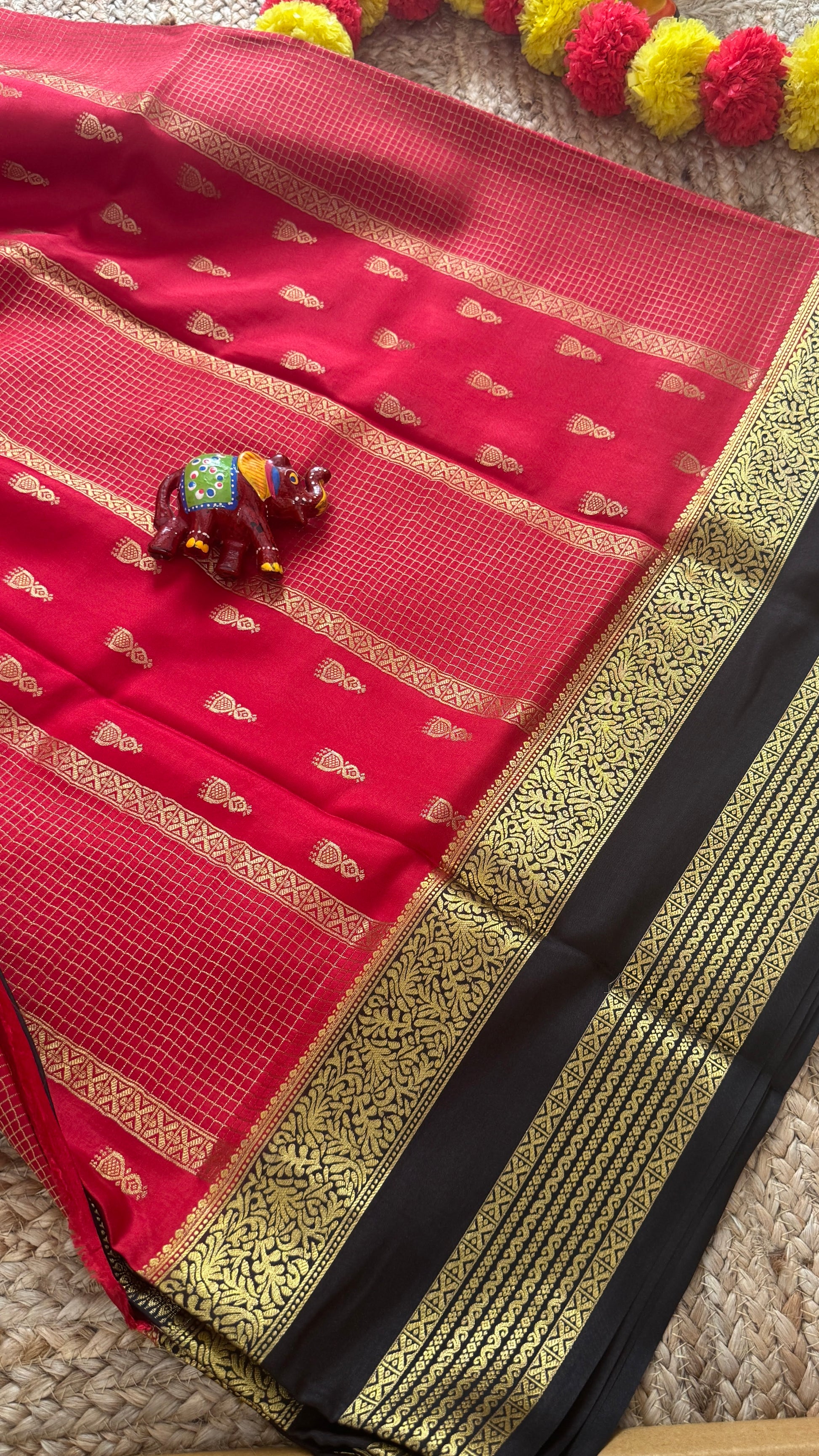 Pure Mysore Silk Saree - Jhumka Zari 2D Red and Black