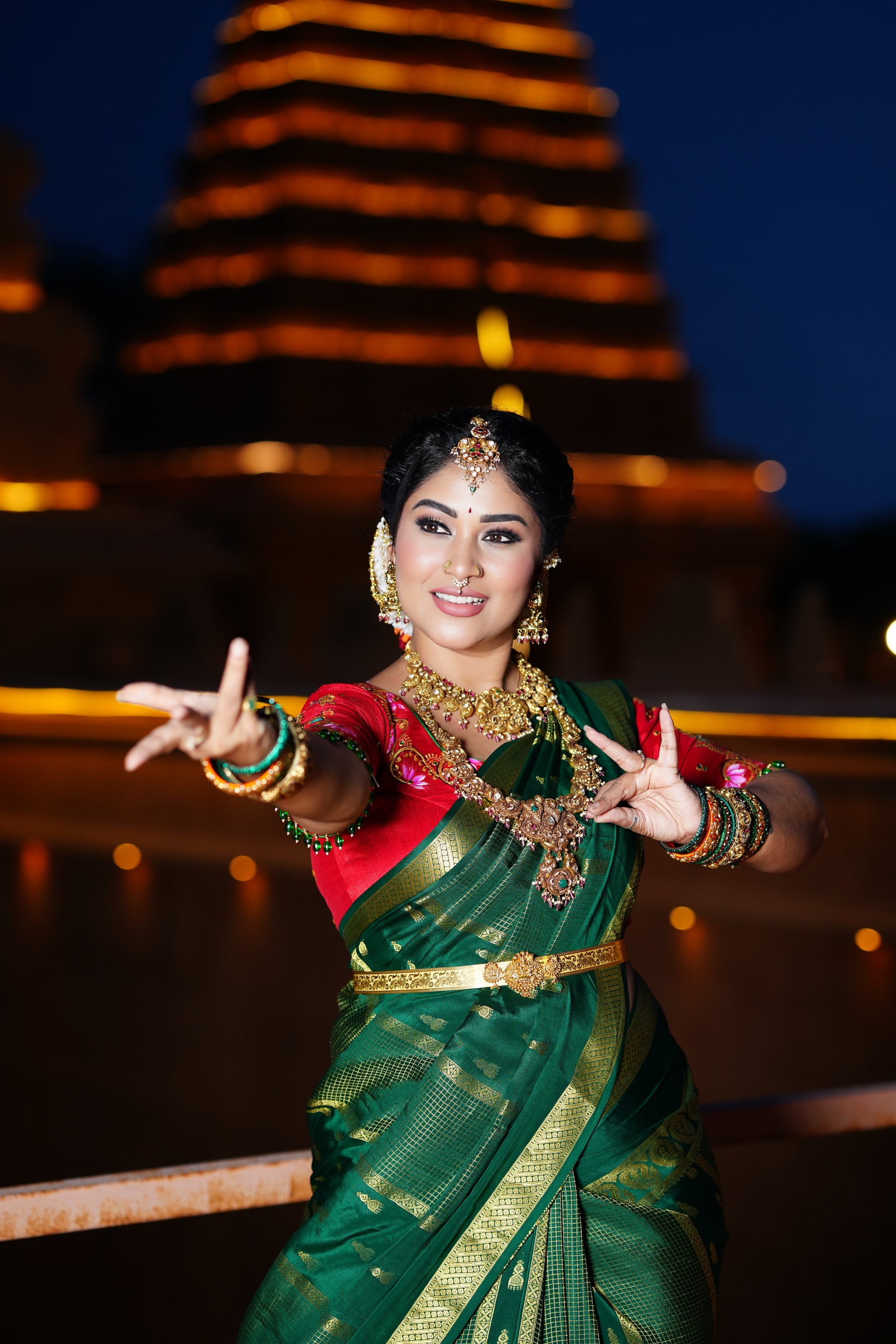Style Tip: Pair it with stunning jumkas and a sleek bun adorned with fresh flowers for an elegant traditional look.