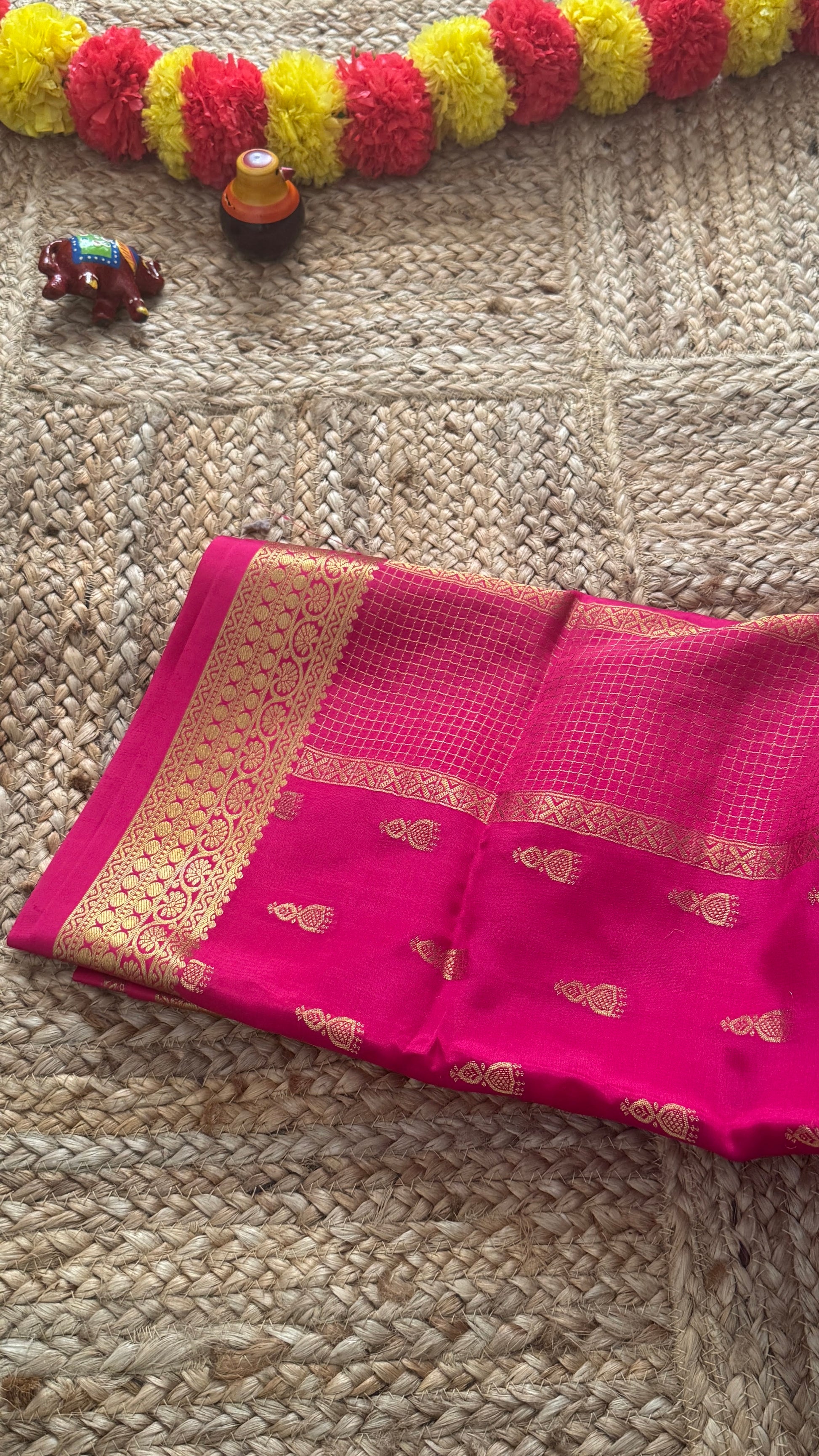 Pure Mysore Silk Saree - Jhumka Zari Solid Pink