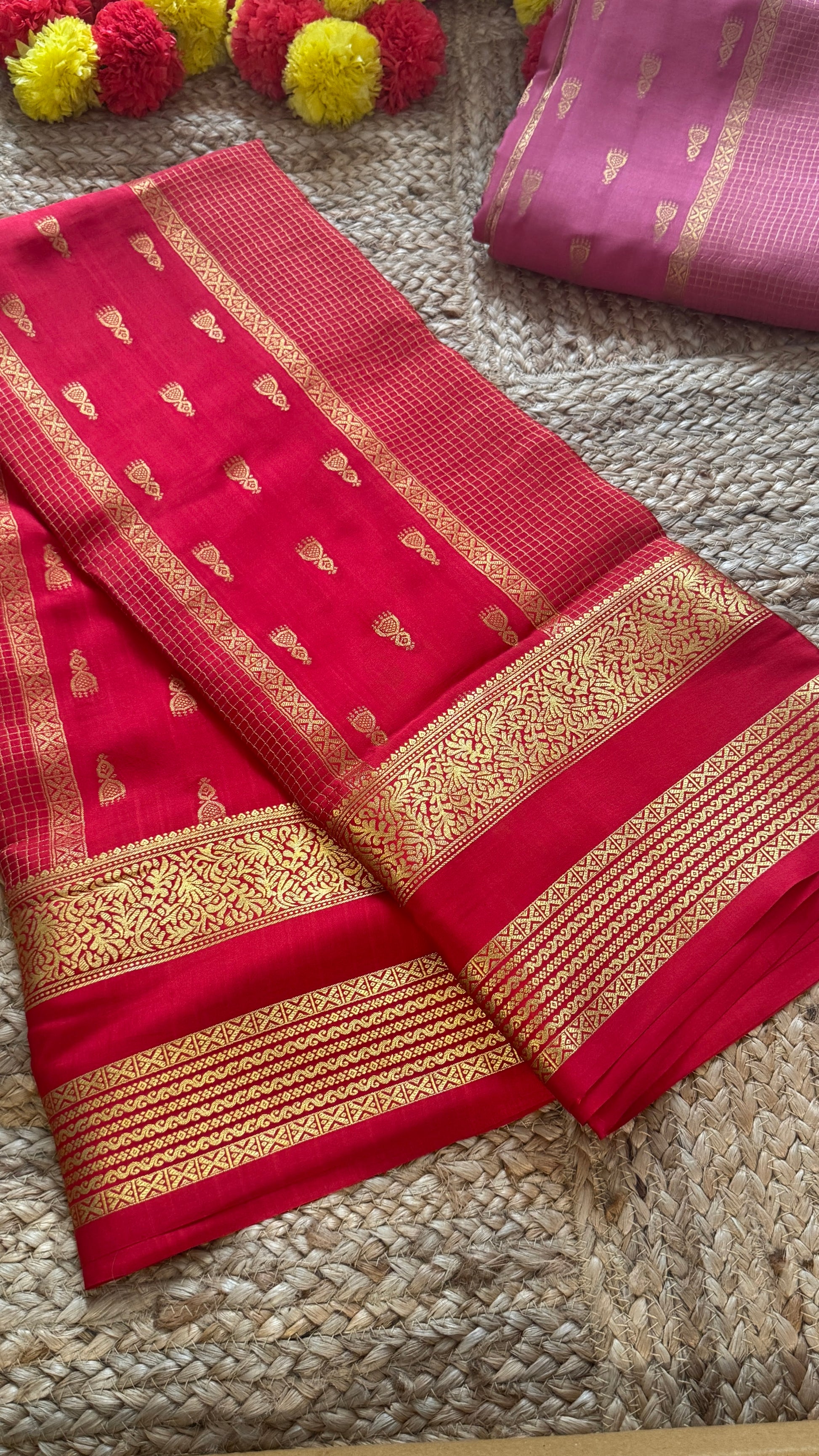 Pure Mysore Silk Saree - Jhumka Zari Solid Red