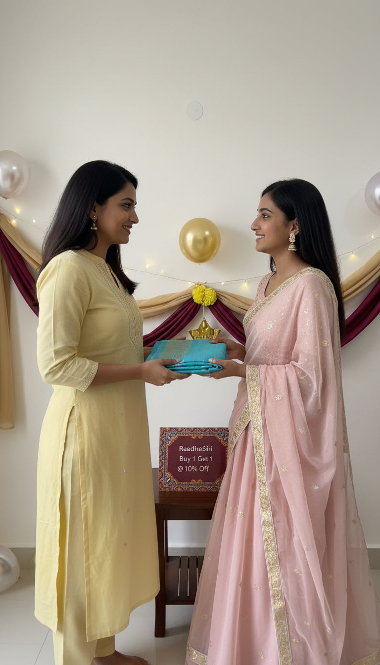 At RaadheSiri Sarees, every saree is packed with care and dispatched within 2 business days from the date of purchase.