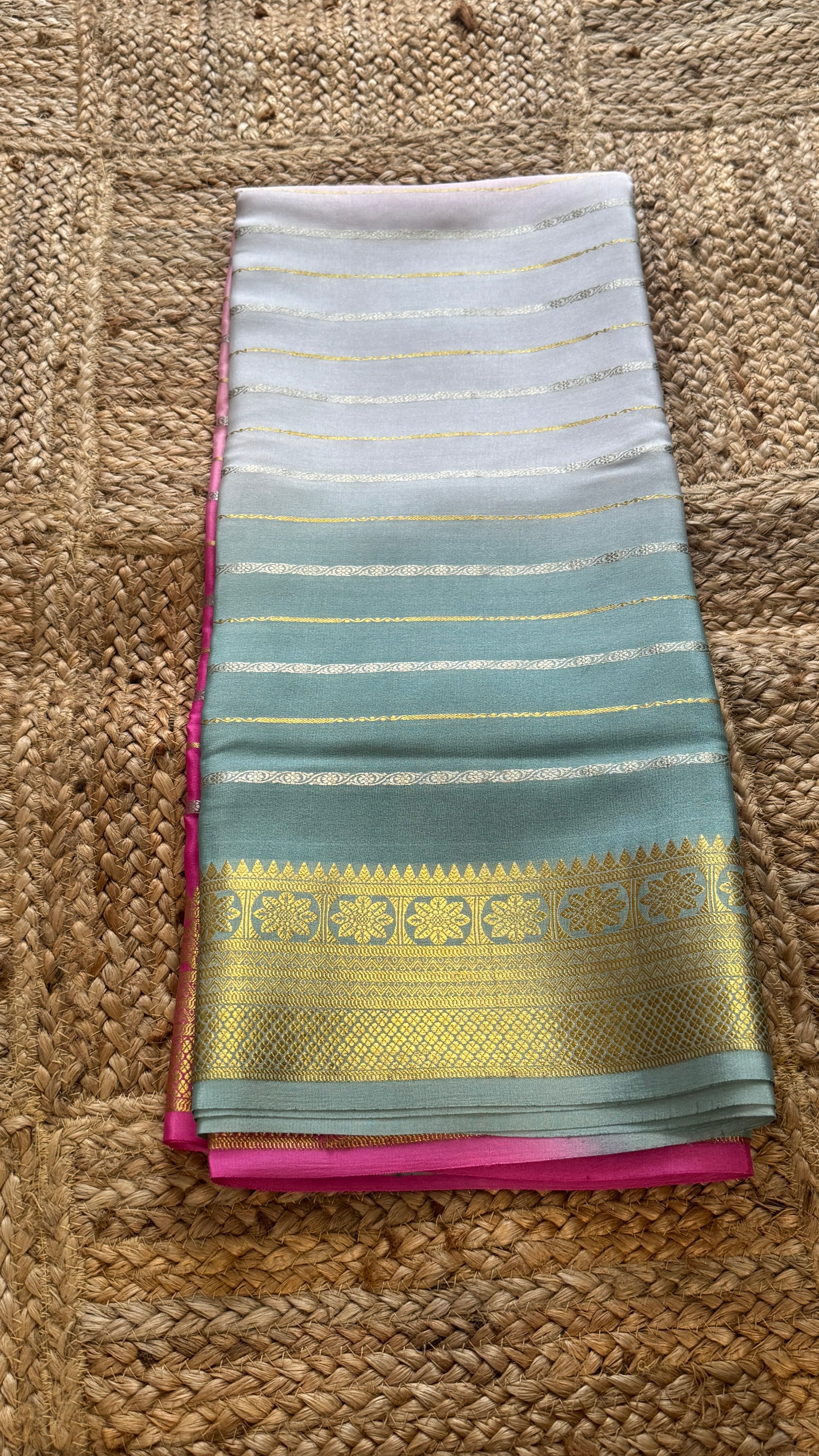 Pure Mysore Silk Sarees - Bespoke Brush Dyeing - Pink and Teal