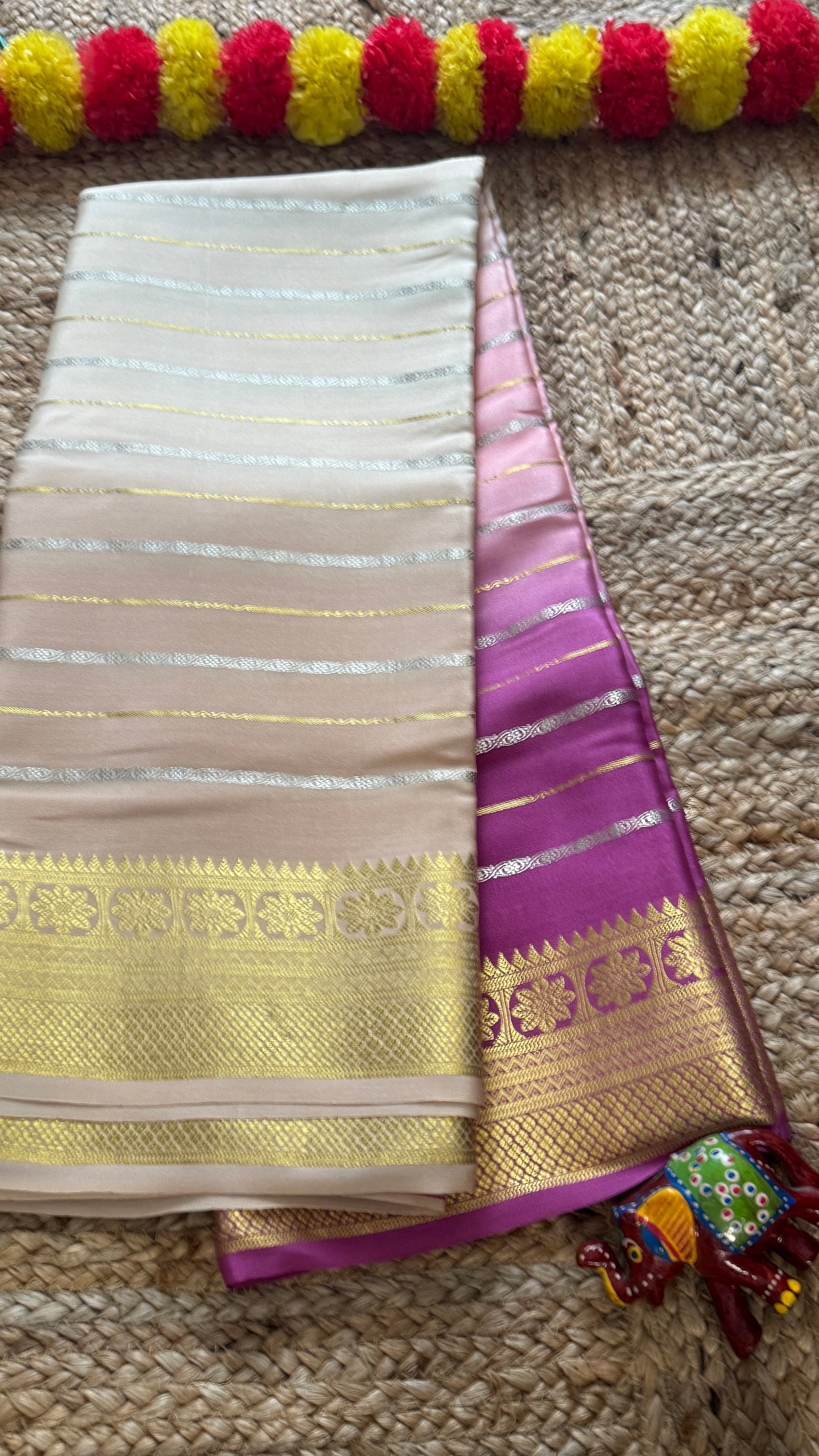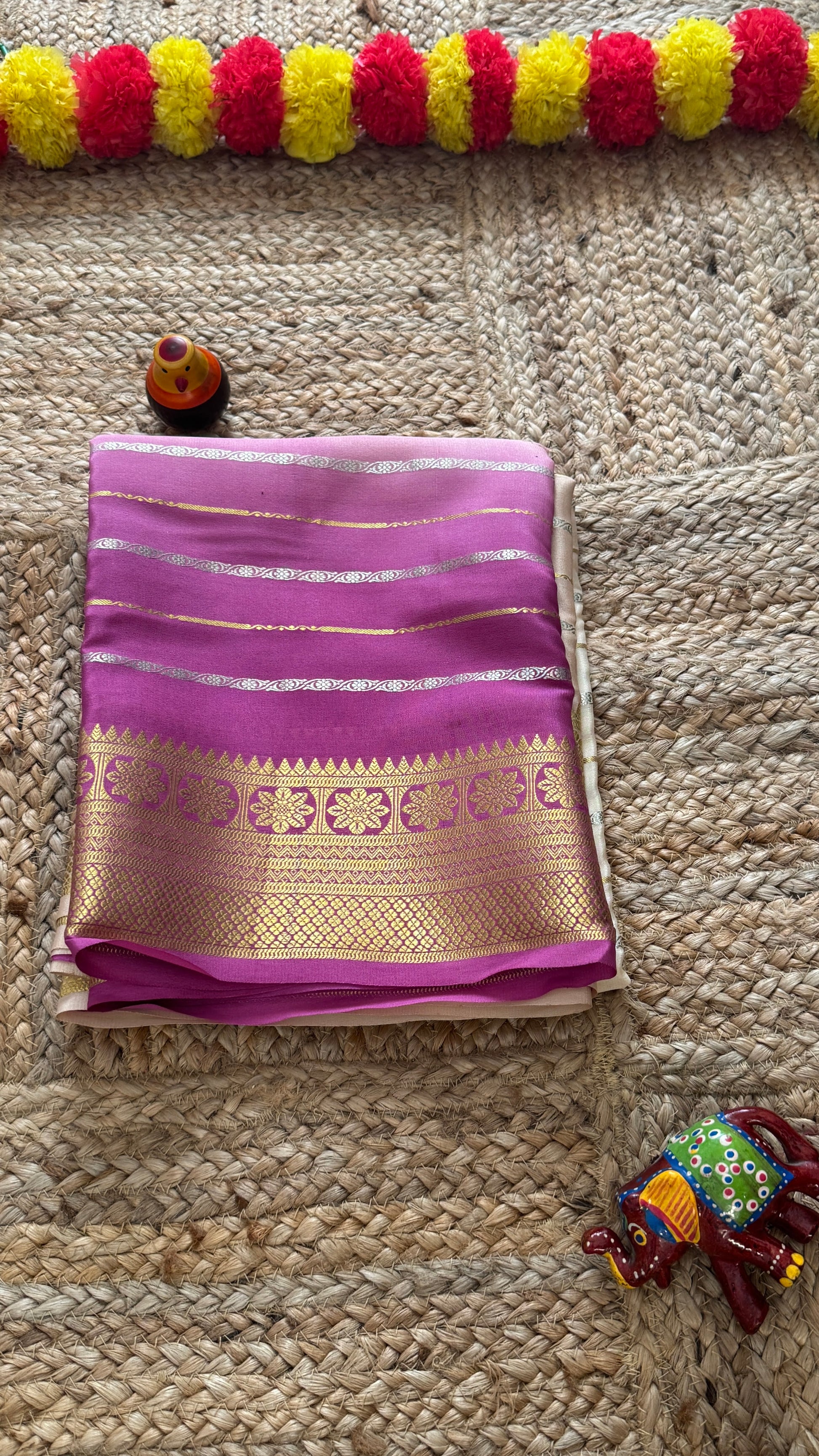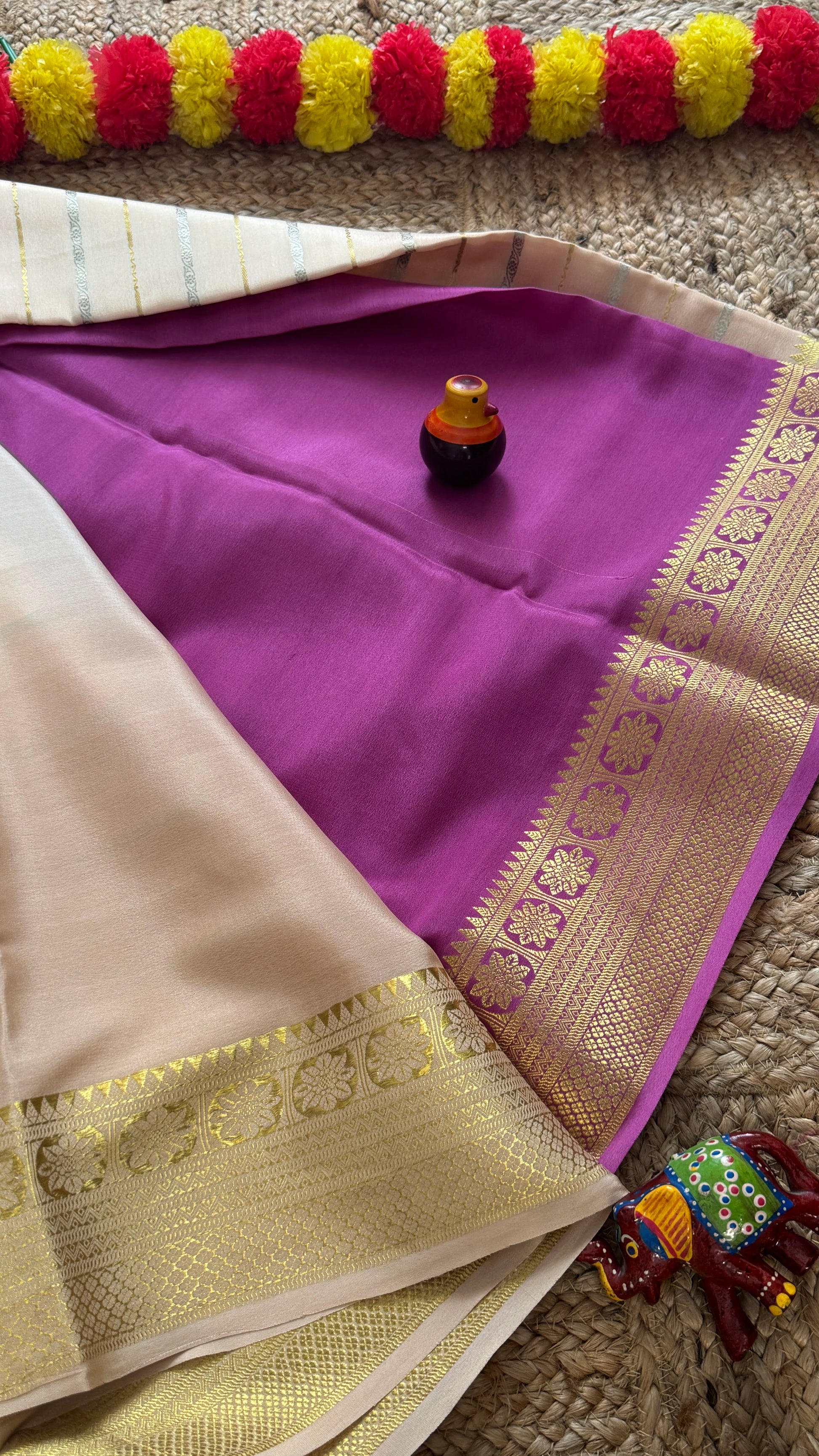 Pure Mysore Silk Sarees - Bespoke Brush Dyeing - Purple to Beige
