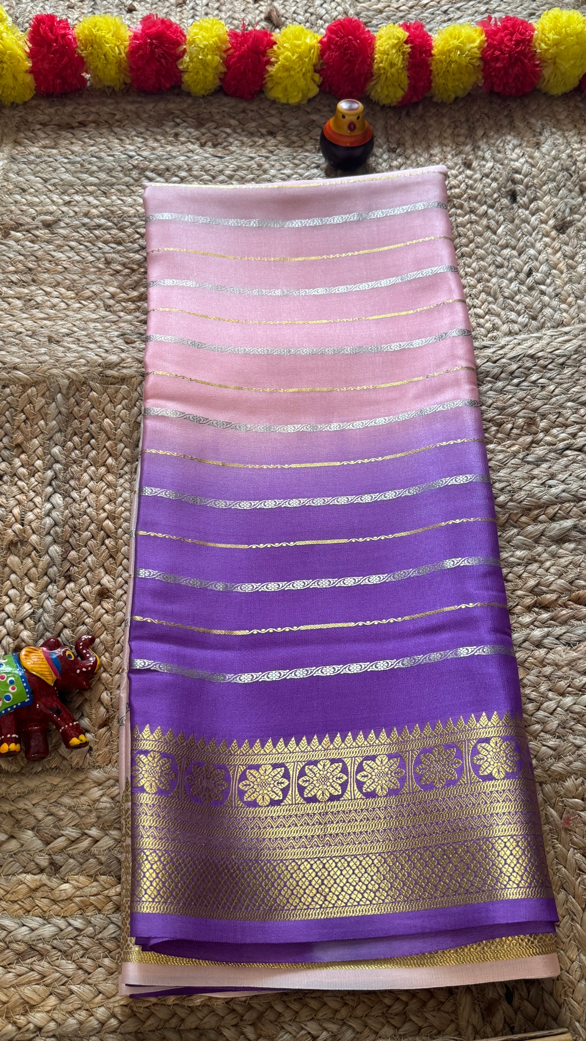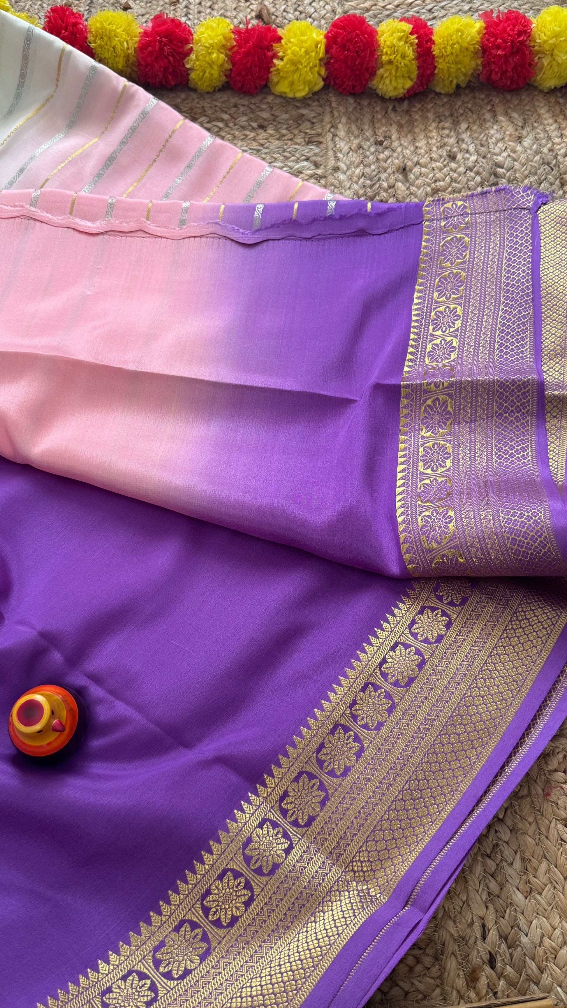 Pure Mysore Silk Sarees - Bespoke Brush Dyeing - Purple to Pink